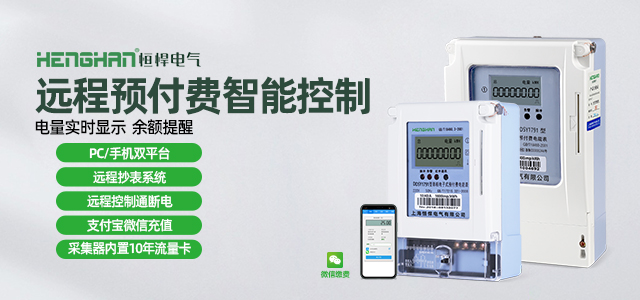 4、预付费电表在正常使用过程中,自动对所购电量作递减计算。当电能表内剩余电量小于20度时,显示器显示当前剩余电量提醒用户购电。当剩余电量等于10度时,停电一次提醒用户购电,此时用户需将IC卡插入电能表一次恢复供电。当剩余电量为零时,停止供电。